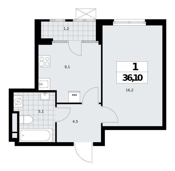 Площадь (общ/жил/кух), м2: 36.1/—/9.1