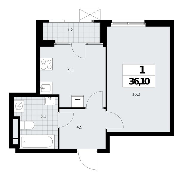 Площадь (общ/жил/кух), м2: 36.1/—/9.1