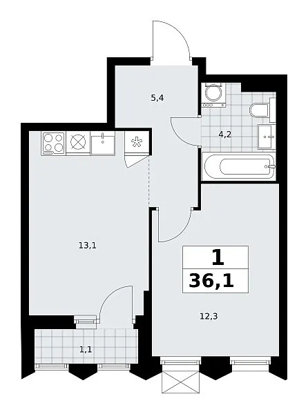 Площадь (общ/жил/кух), м2: 36.1/—/13.1