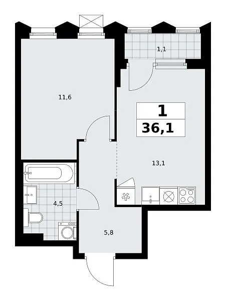 Площадь (общ/жил/кух), м2: 36.1/—/13.1