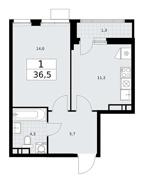 Площадь (общ/жил/кух), м2: 36.6/—/11.3