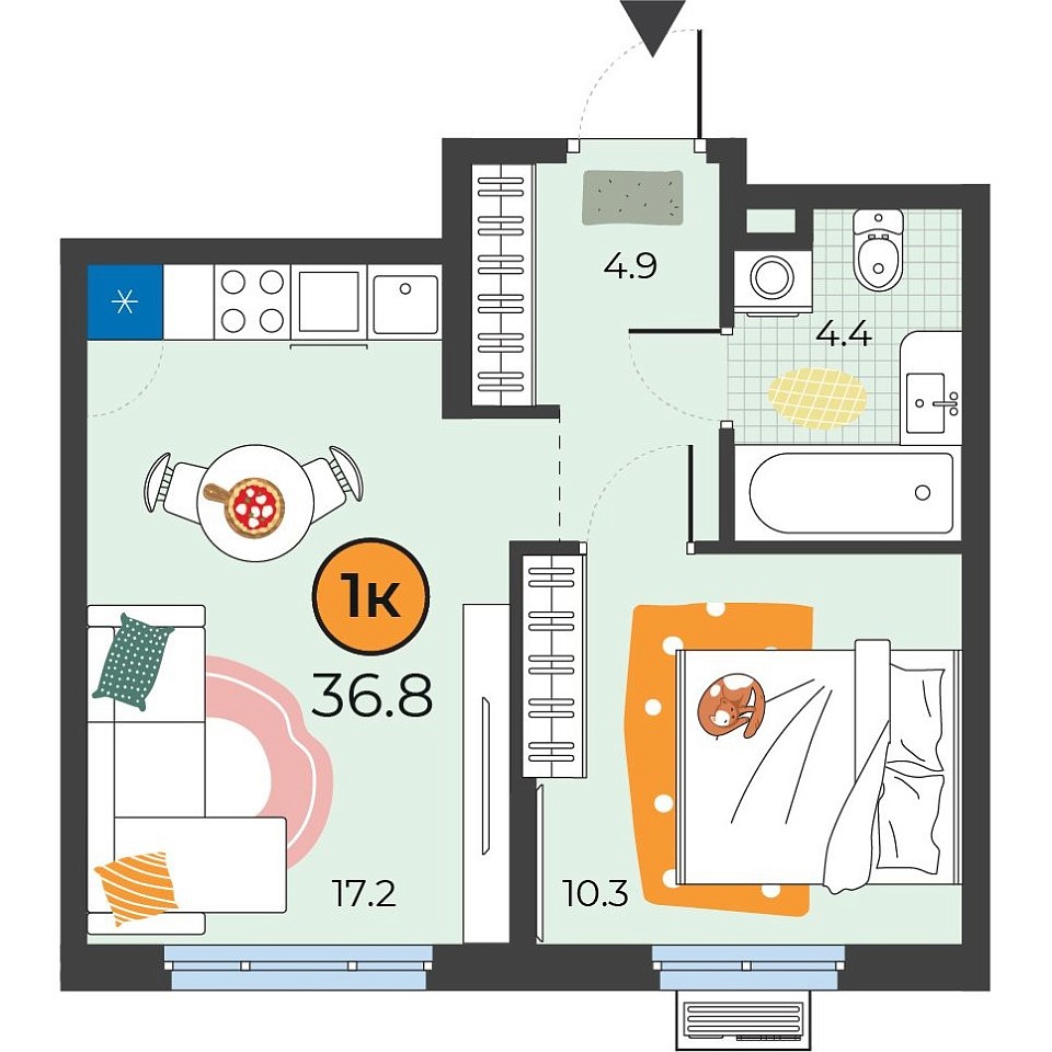 Количество комнат: 1, 36.8 кв.м.