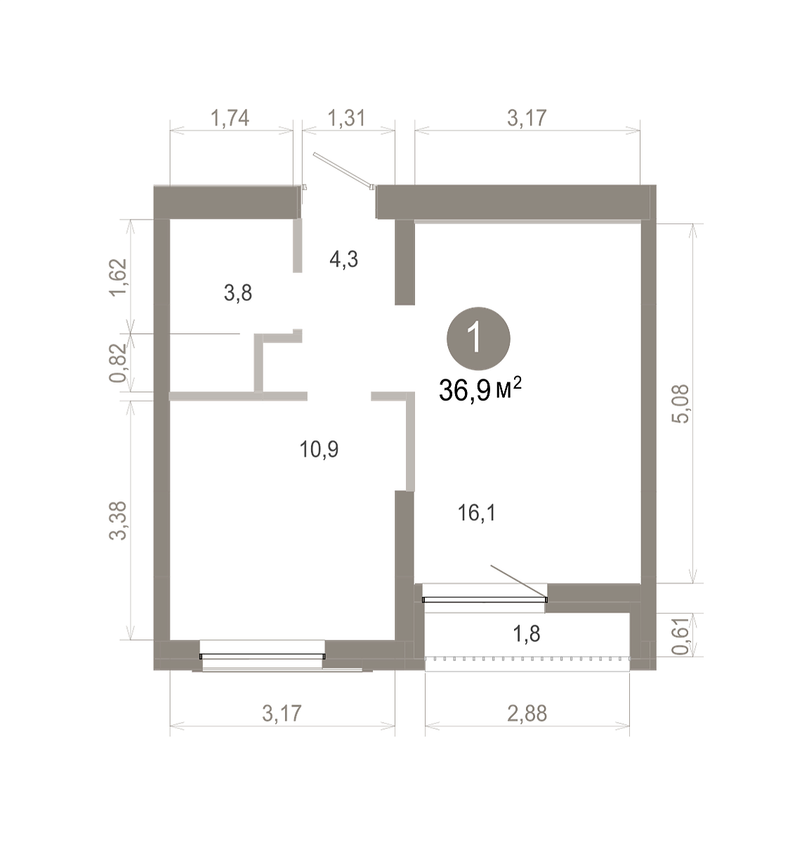 Купить новую однокомнатную квартиру 36.89 м² на 2/7 этаже в ЖК «Октябрьский на Туре», г. Тюмень за 6020000 ₽ | Агентство недвижимости «Вплюсе.Топ» — Недвижимость России