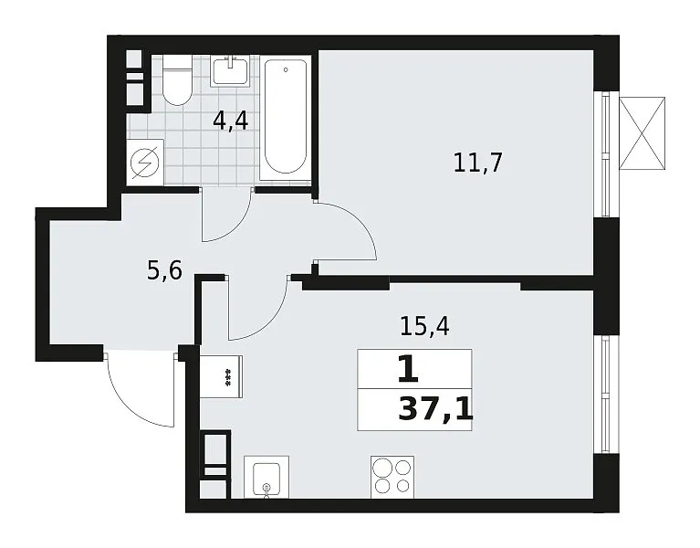 Площадь (общ/жил/кух), м2: 37.1/—/15.4