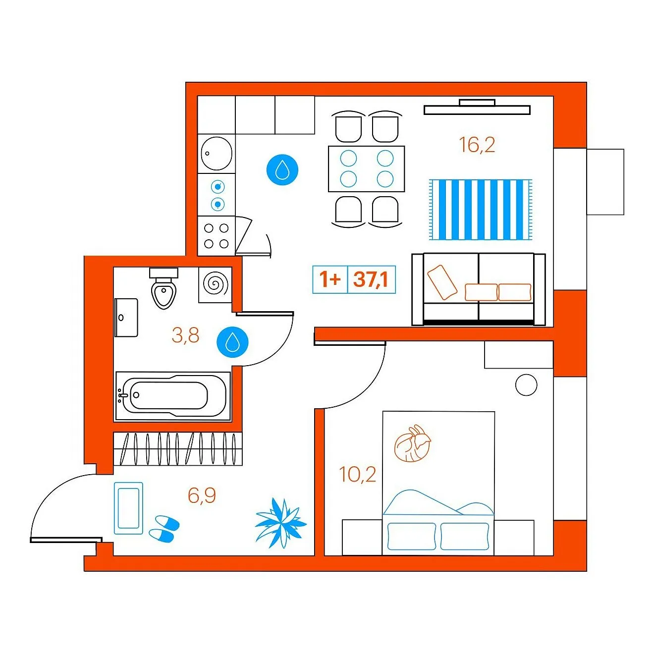 Общая площадь 37.2 м2