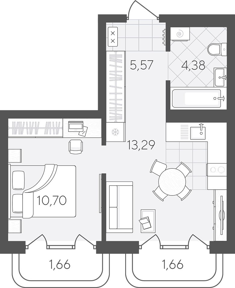 Площадь (общ/жил/кух), м2: 26.57/14.96/5.71