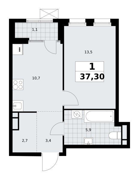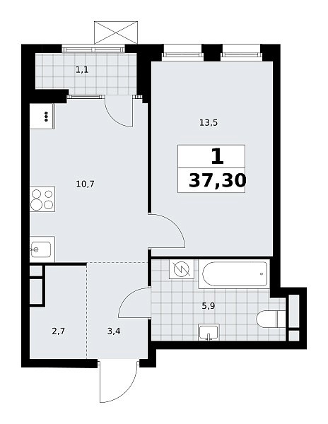 Площадь (общ/жил/кух), м2: 37.3/—/10.7