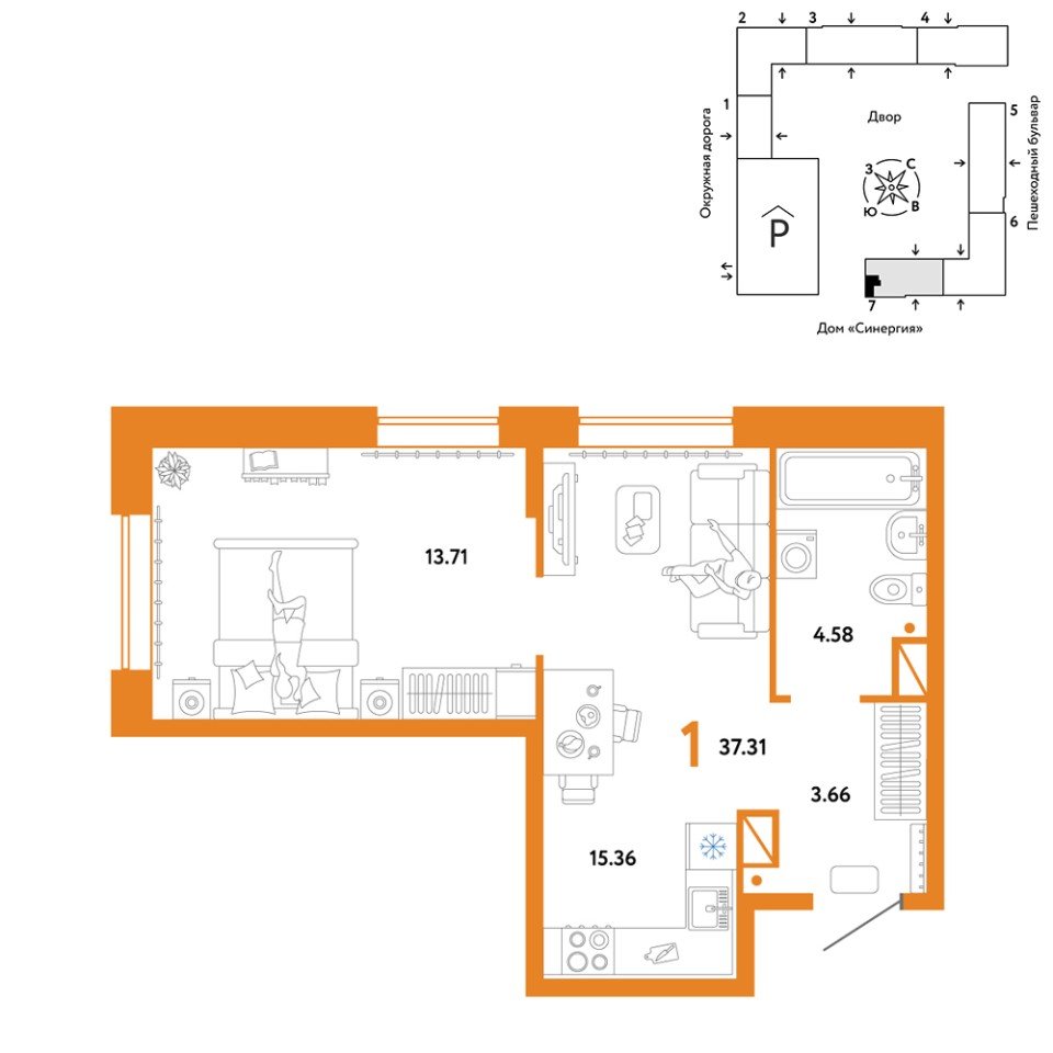 Количество комнат: 1, 37.31 кв.м.