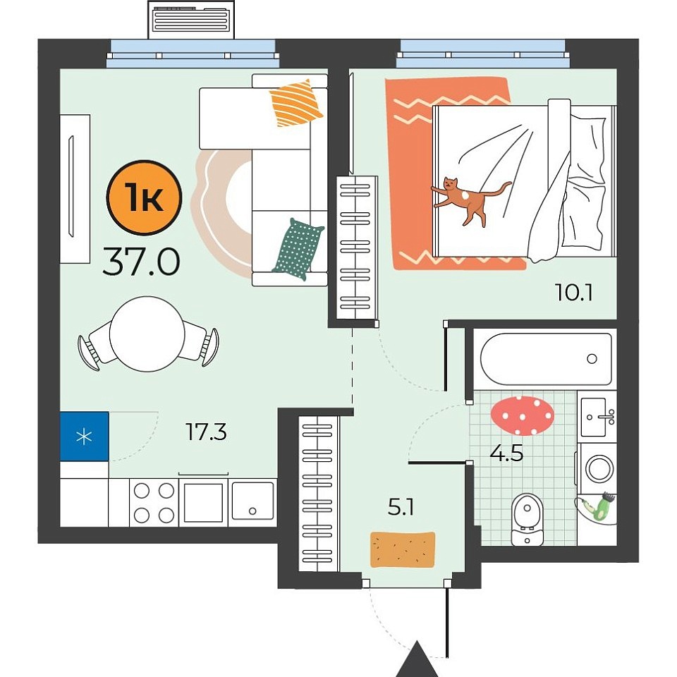 Площадь (общ/жил/кух), м2: 37.5/10.1/—