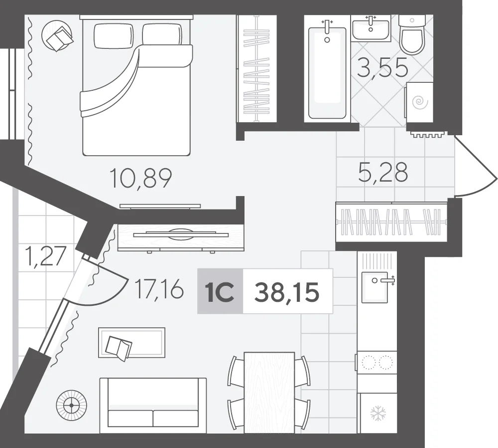 Площадь (общ/жил/кух), м2: 35.57/—/17.01