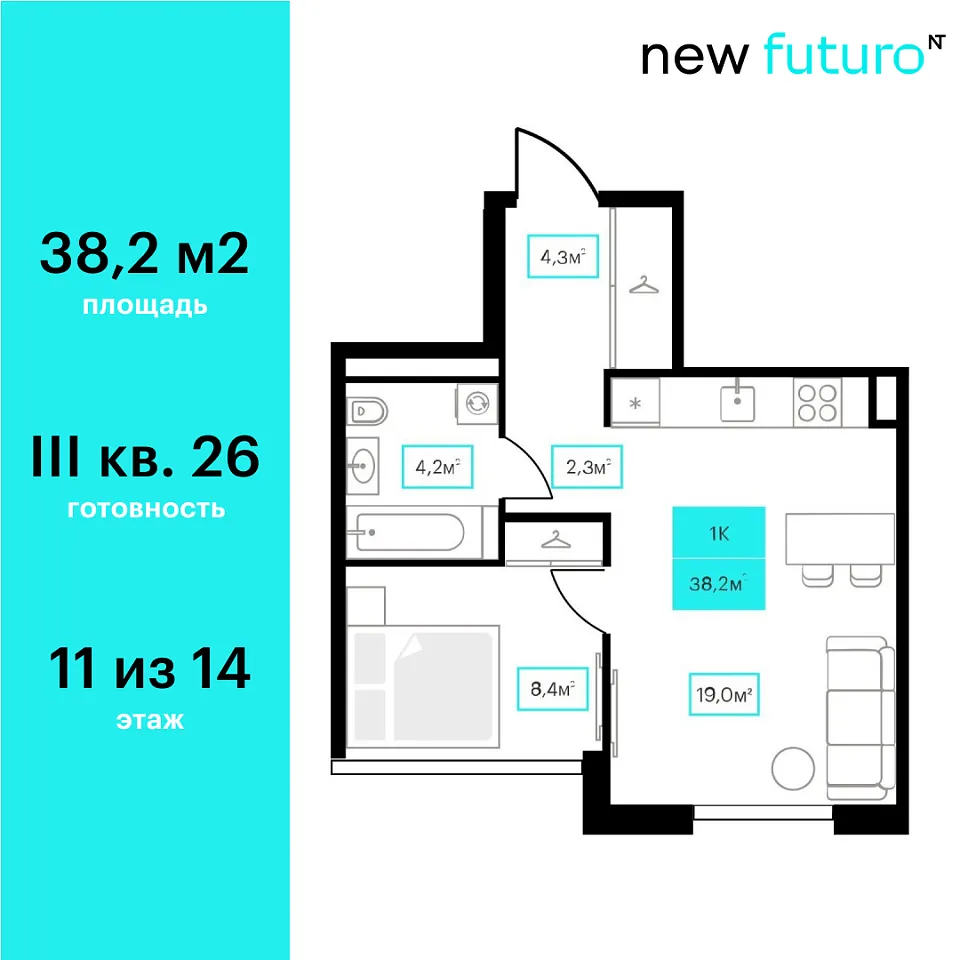 Купить новую однокомнатную квартиру 38.2 м² на 11/23 этаже в ЖК «Futuro», г. Тюмень за 7020000 ₽ | Агентство недвижимости «Вплюсе.Топ» — Недвижимость России