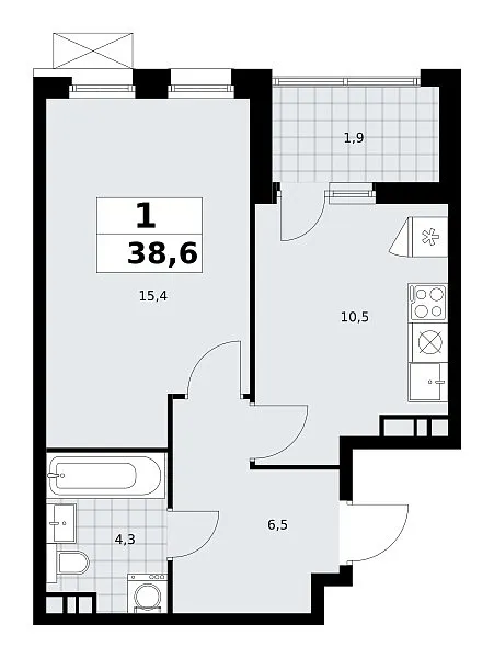 Количество комнат: 1, 38.6 кв.м.