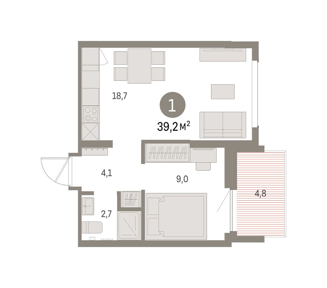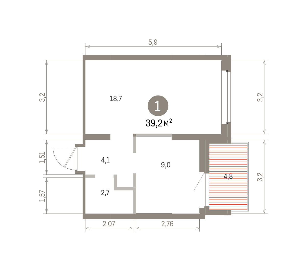Площадь (общ/жил/кух), м2: 39.31/8.78/18.96