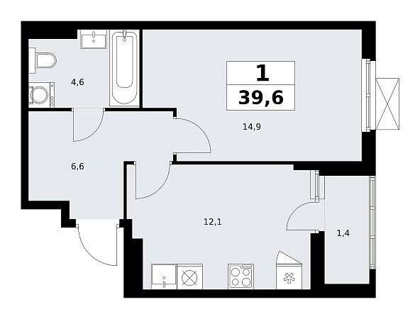 Площадь (общ/жил/кух), м2: 39.6/—/12.1