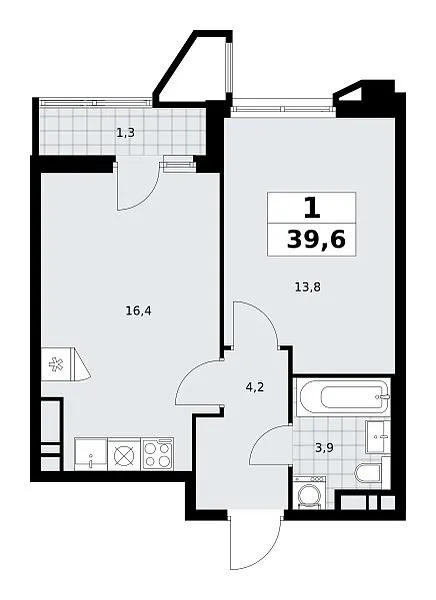 Количество комнат: 1, 39.6 кв.м.