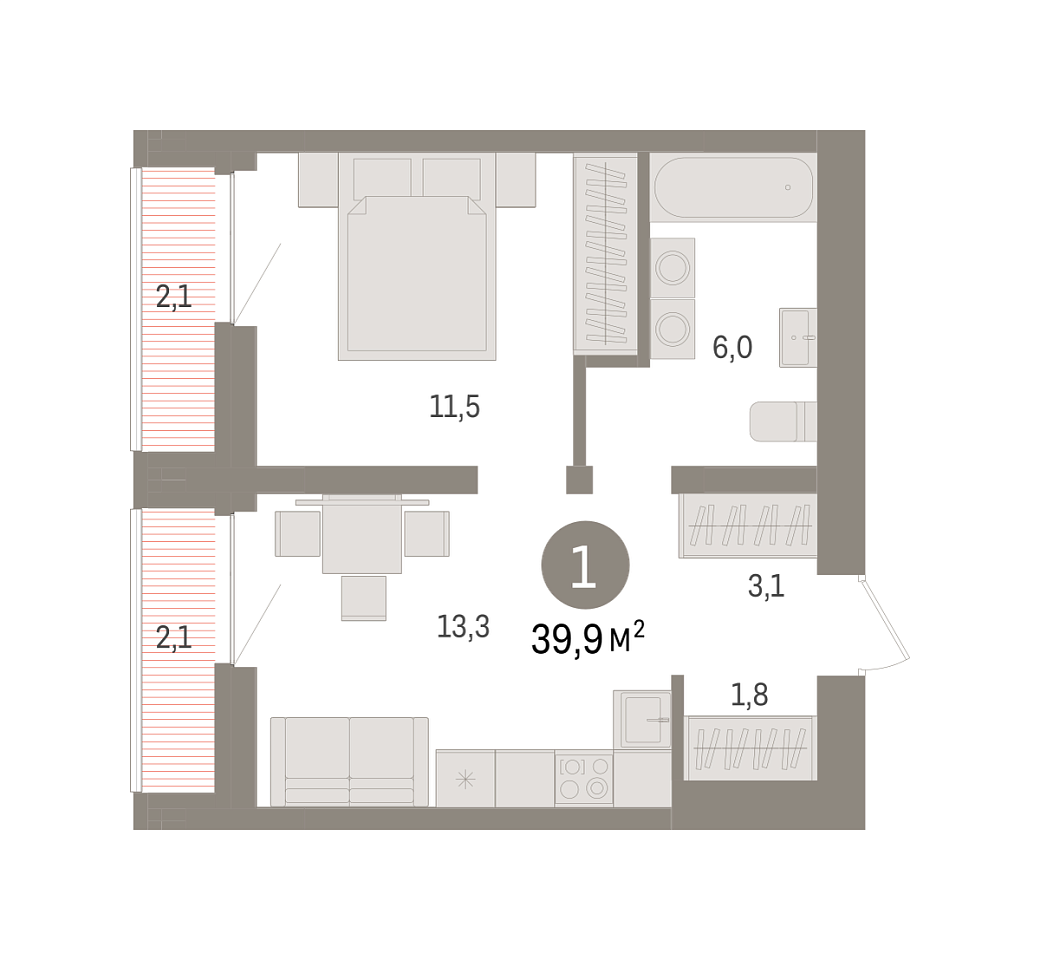Количество комнат: 1, 39.9 кв.м.