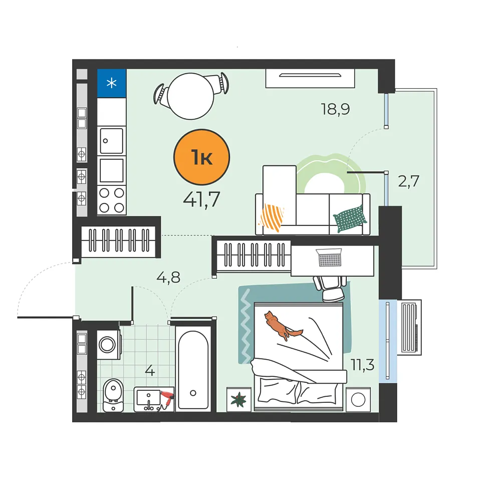 Площадь (общ/жил/кух), м2: 39.1/11.4/—
