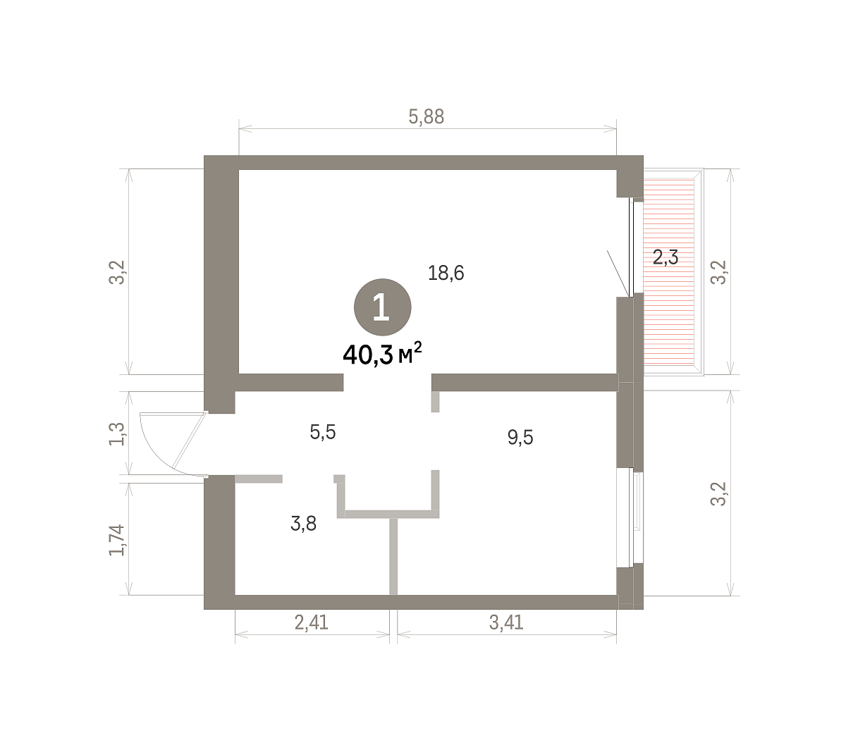 Количество комнат: 1, 40.25 кв.м.