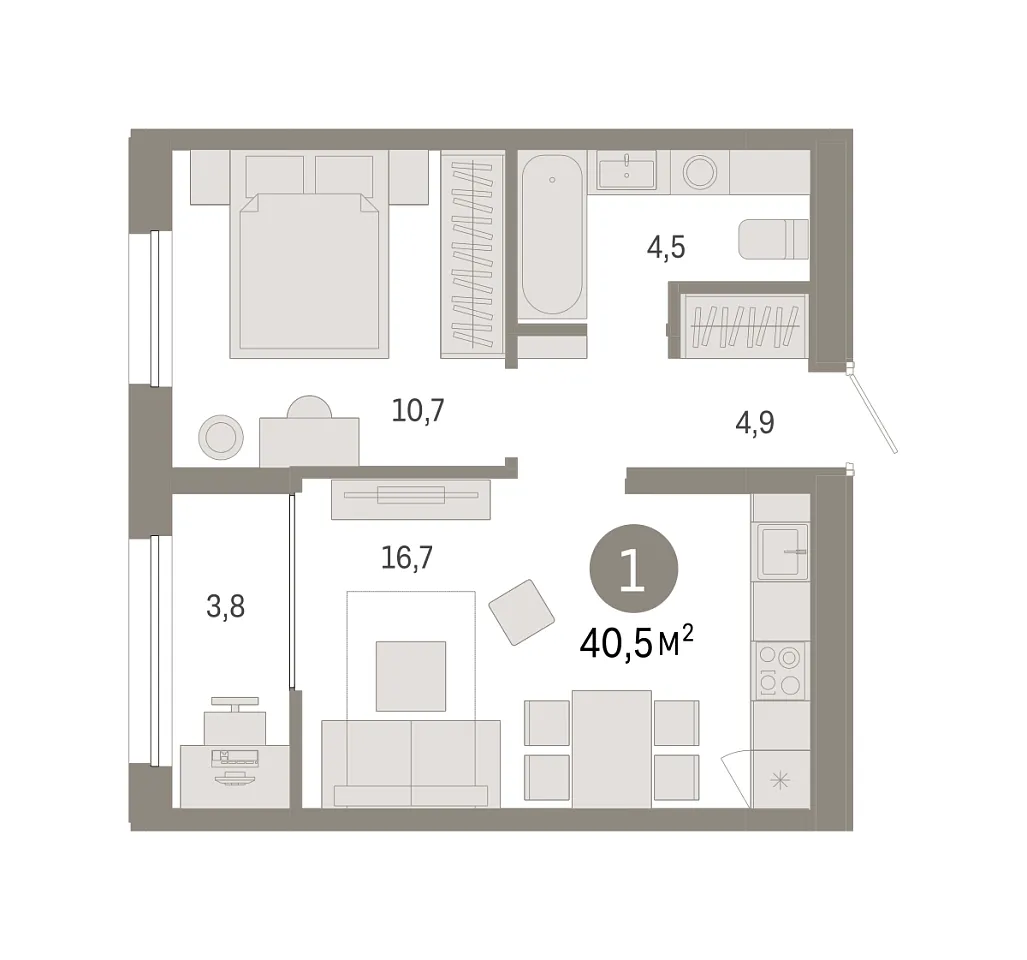 Купить новую однокомнатную квартиру 40.46 м² на 9/9 этаже в ЖК «Республики 205», г. Тюмень за 7610000 ₽ | Агентство недвижимости «Вплюсе.Топ» — Недвижимость России