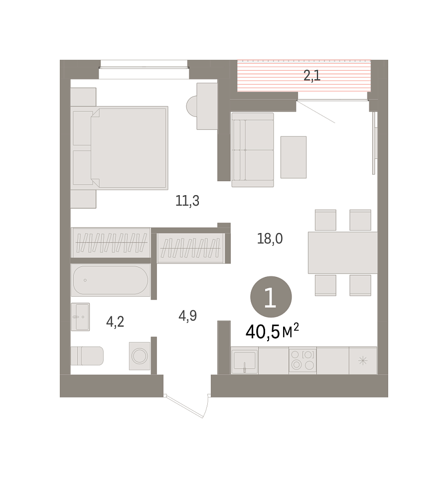 Количество комнат: 1, 40.5 кв.м.