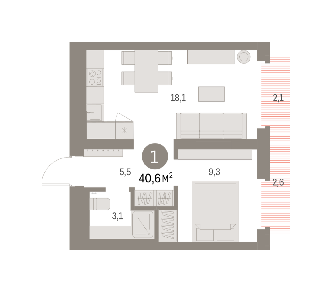 Купить новую однокомнатную квартиру 40.58 м² на 5/9 этаже в ЖК «Брусника в Академическом», г. Тюмень за 7020000 ₽ | Агентство недвижимости «Вплюсе.Топ» — Агентство недвижимости "Вплюсе.Топ"