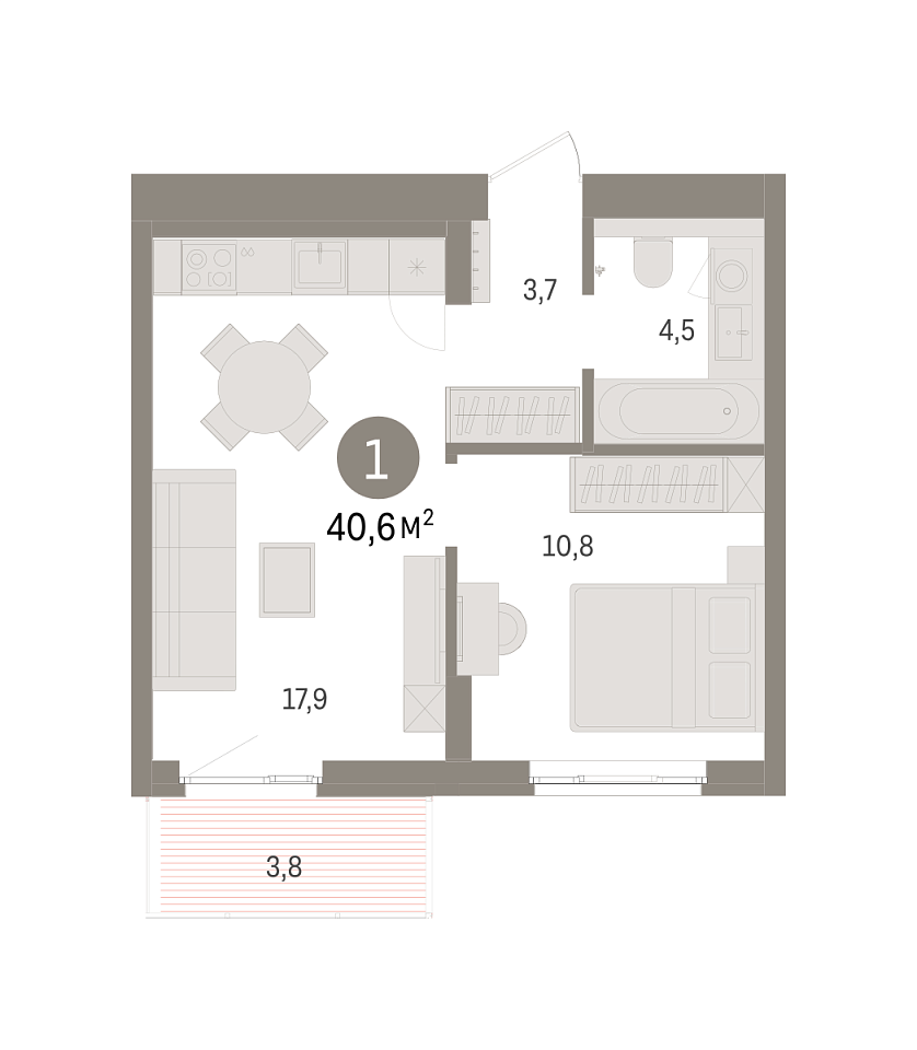 Купить новую однокомнатную квартиру 40.63 м² на 7/9 этаже в ЖК «Брусника в Новоселье», г. Тюмень за 5630000 ₽ | Агентство недвижимости «Вплюсе.Топ» — Недвижимость России