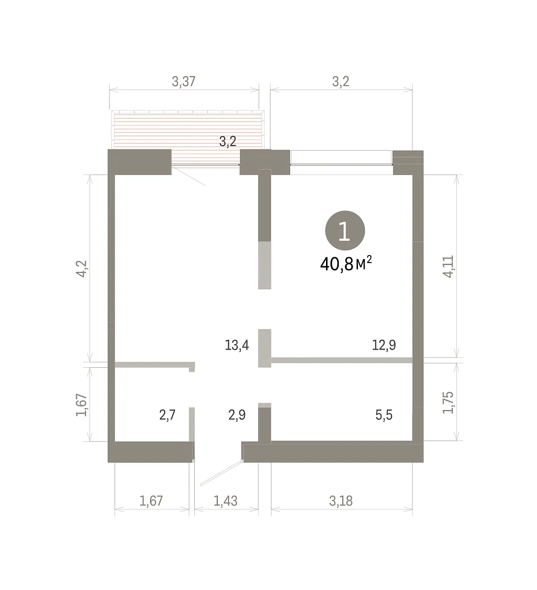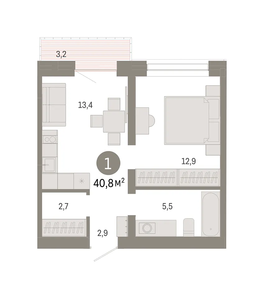 Количество комнат: 1, 40.78 кв.м.