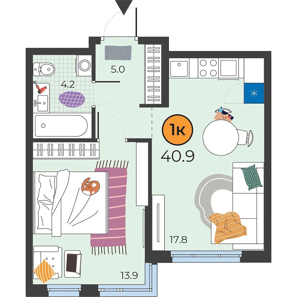Площадь (общ/жил/кух), м2: 40.9/13.9/—