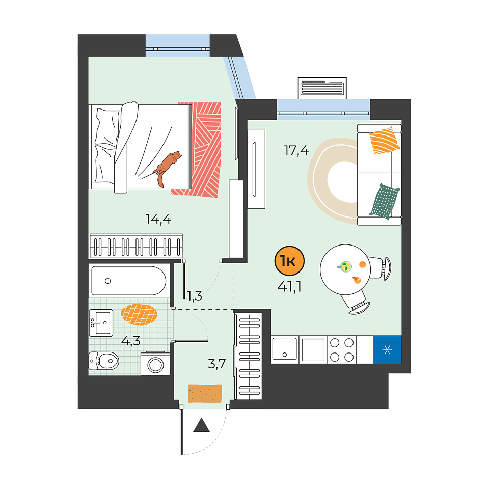 Площадь (общ/жил/кух), м2: 40.6/14.5/—