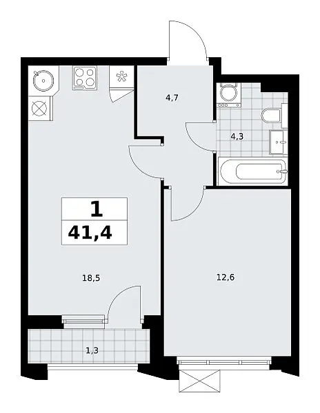 Количество комнат: 1, 41.4 кв.м.