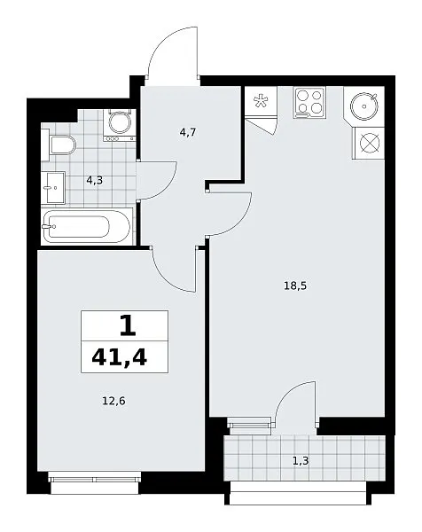 Площадь (общ/жил/кух), м2: 41.6/—/17.6
