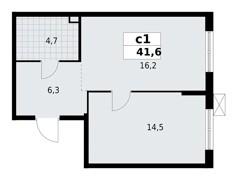 Общая площадь 41.65 м2