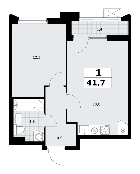 Площадь (общ/жил/кух), м2: 41.8/—/17.6