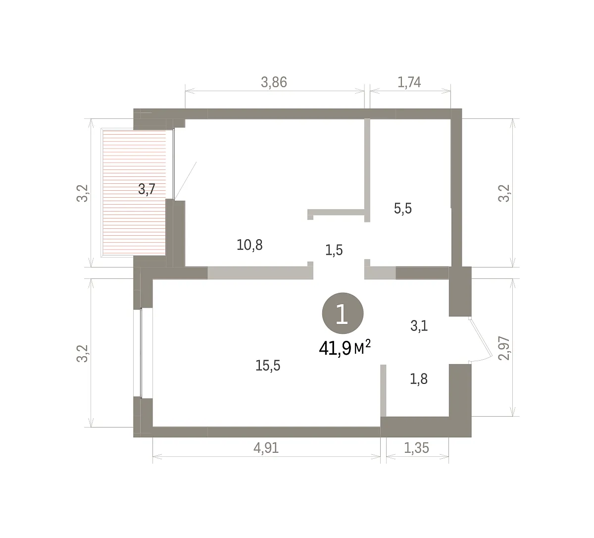 Площадь (общ/жил/кух), м2: 43.1/11.3/20.2