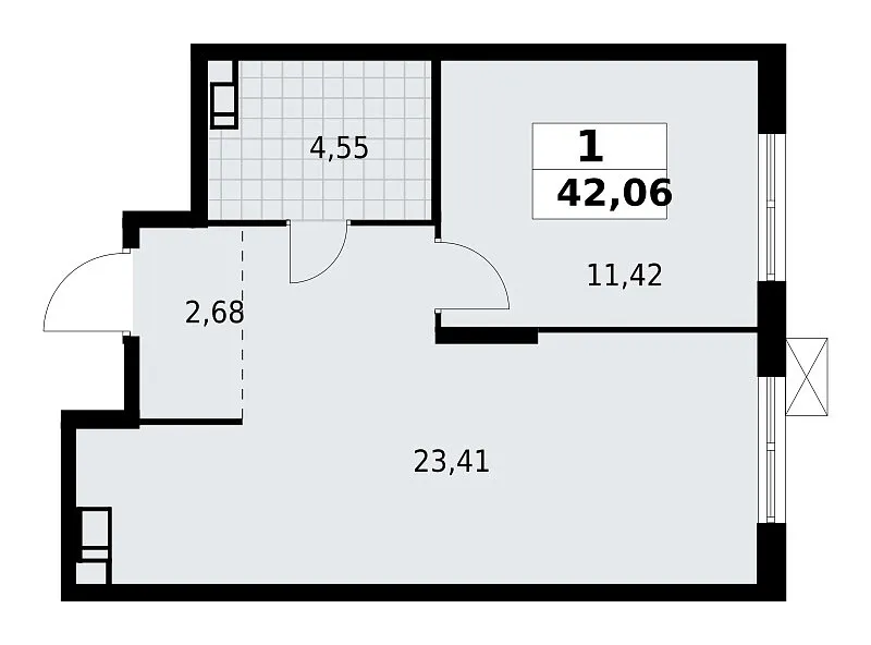 Количество комнат: 1, 42.06 кв.м.