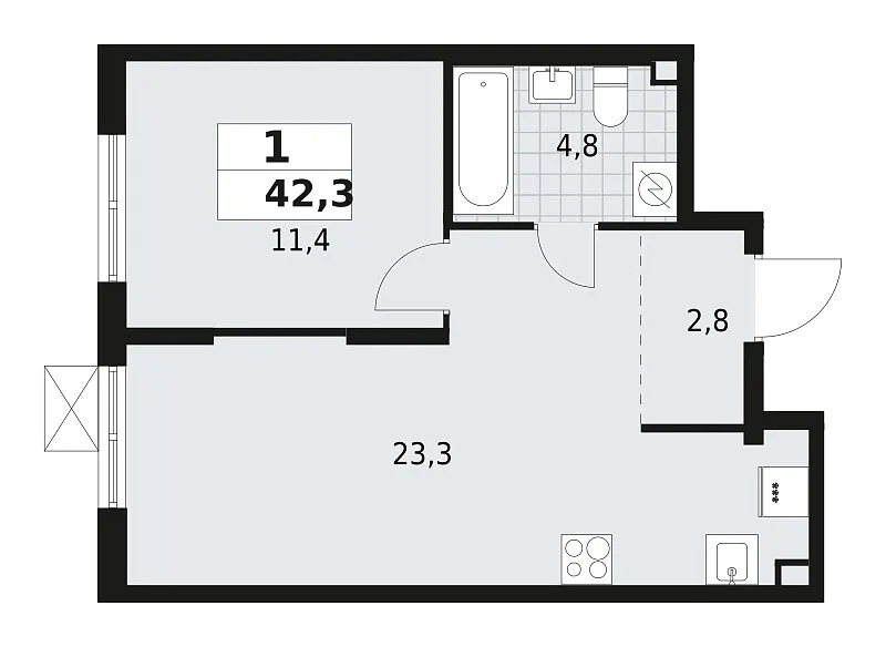 Общая площадь 42.3 м2