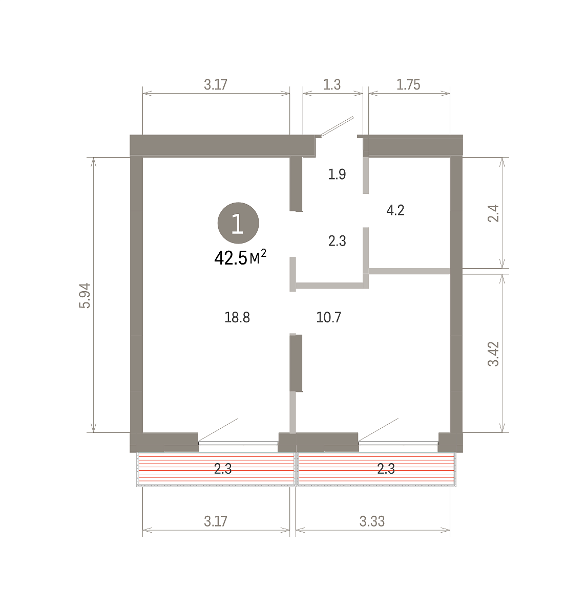Площадь (общ/жил/кух), м2: 40.18/10.69/18.83