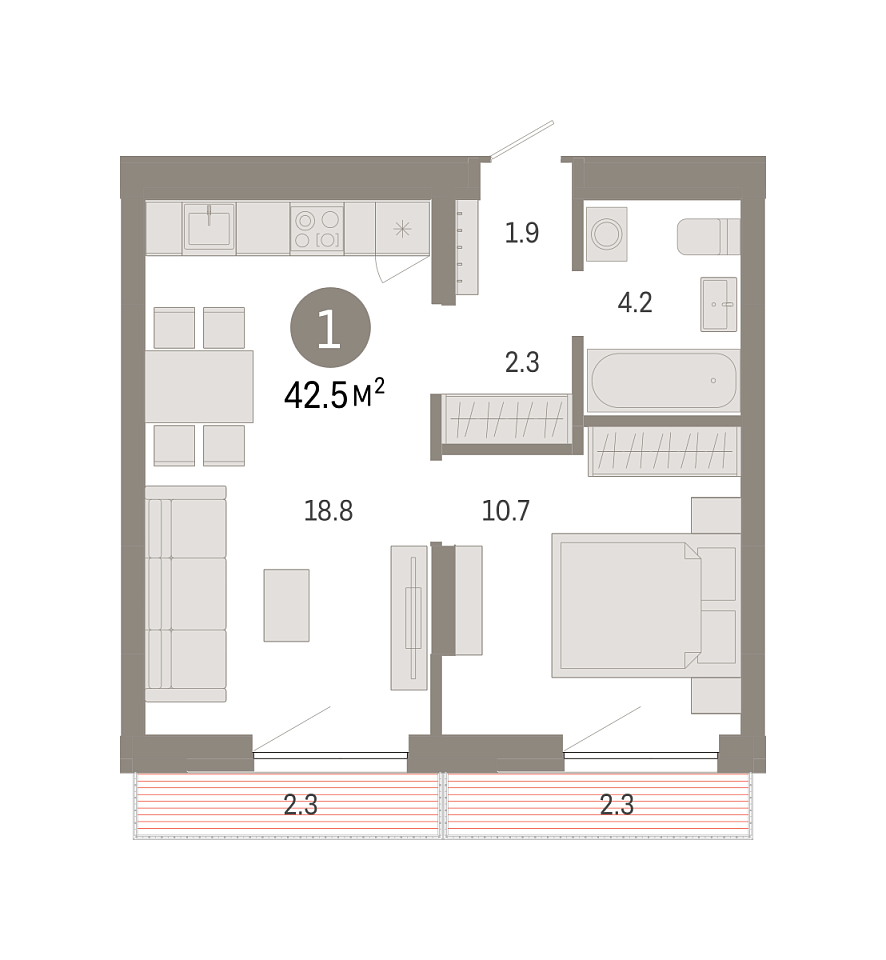 Купить новую однокомнатную квартиру 42.48 м² на 4/7 этаже в ЖК «Октябрьский на Туре», г. Тюмень за 7640000 ₽ | Агентство недвижимости «Вплюсе.Топ» — Недвижимость России