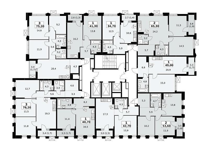 Общая площадь 42.7 м2