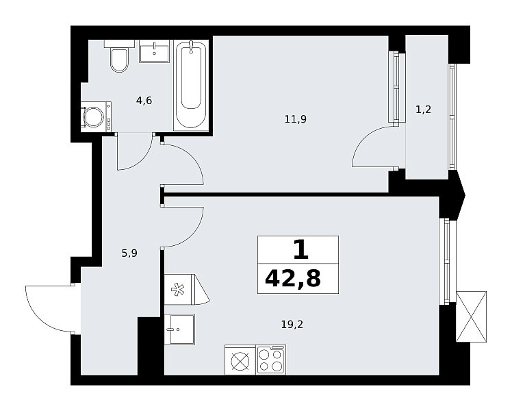 Площадь (общ/жил/кух), м2: 41.9/—/17.6