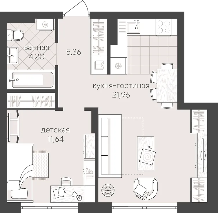 Купить новую однокомнатную квартиру 43.16 м² на 3/4 этаже в ЖК «Скандиа. Квартал у Озера», г. Тюмень за 5800000 ₽ | Агентство недвижимости «Вплюсе.Топ» — Недвижимость России