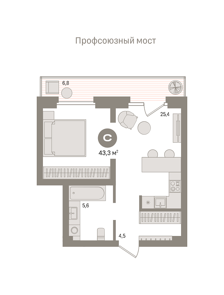 Площадь (общ/жил/кух), м2: 43.3/21.4/5