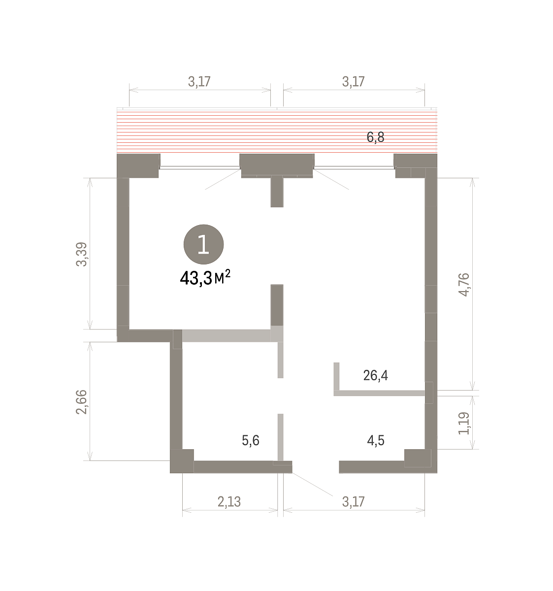 Площадь (общ/жил/кух), м2: 43.1/11.5/13.3
