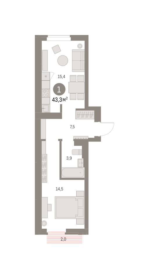 Купить новую однокомнатную квартиру 43.33 м² на 2/9 этаже в ЖК «Брусника в Академическом», г. Тюмень за 7110000 ₽ | Агентство недвижимости «Вплюсе.Топ» — Агентство недвижимости "Вплюсе.Топ"