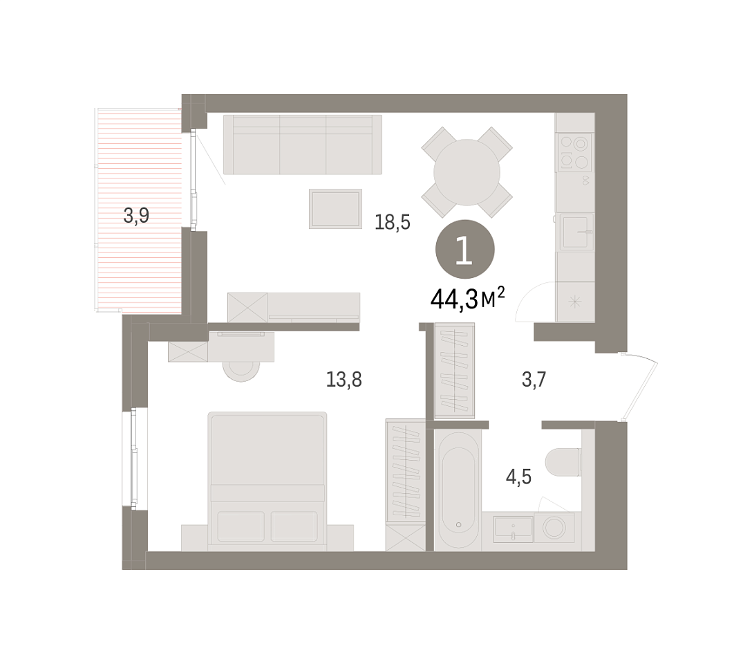Купить новую однокомнатную квартиру 44.34 м² на 5/8 этаже в ЖК «Брусника в Новоселье», г. Тюмень за 6370000 ₽ | Агентство недвижимости «Вплюсе.Топ» — Недвижимость России