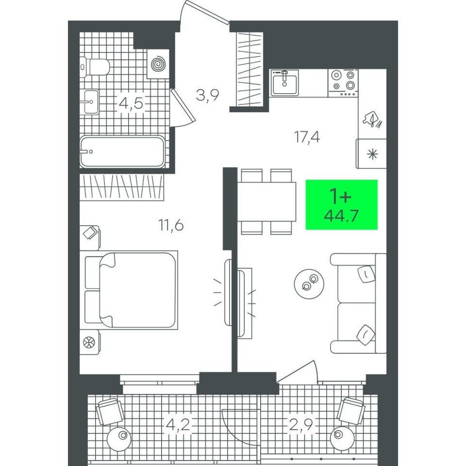 Купить новую однокомнатную квартиру 44.72 м² на 12/22 этаже в ЖК «Гранд Квартал», г. Тюмень за 7400000 ₽ | Агентство недвижимости «Вплюсе.Топ» — Агентство недвижимости "Вплюсе.Топ"