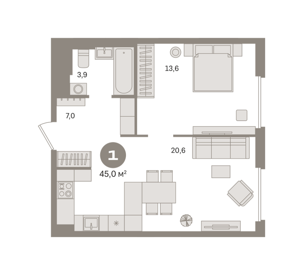 Купить новую однокомнатную квартиру 44.99 м² на 15/16 этаже в ЖК «Квартал Герцена», г. Тюмень за 15060000 ₽ | Агентство недвижимости «Вплюсе.Топ» — Агентство недвижимости "Вплюсе.Топ"