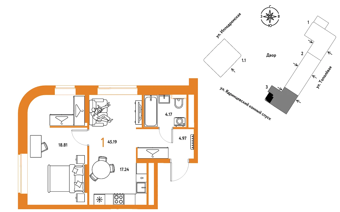 Купить новую однокомнатную квартиру 45.19 м² на 5/9 этаже в ЖК «Страна.Тополёвая», г. Тюмень за 10505882 ₽ | Агентство недвижимости «Вплюсе.Топ» — Недвижимость России