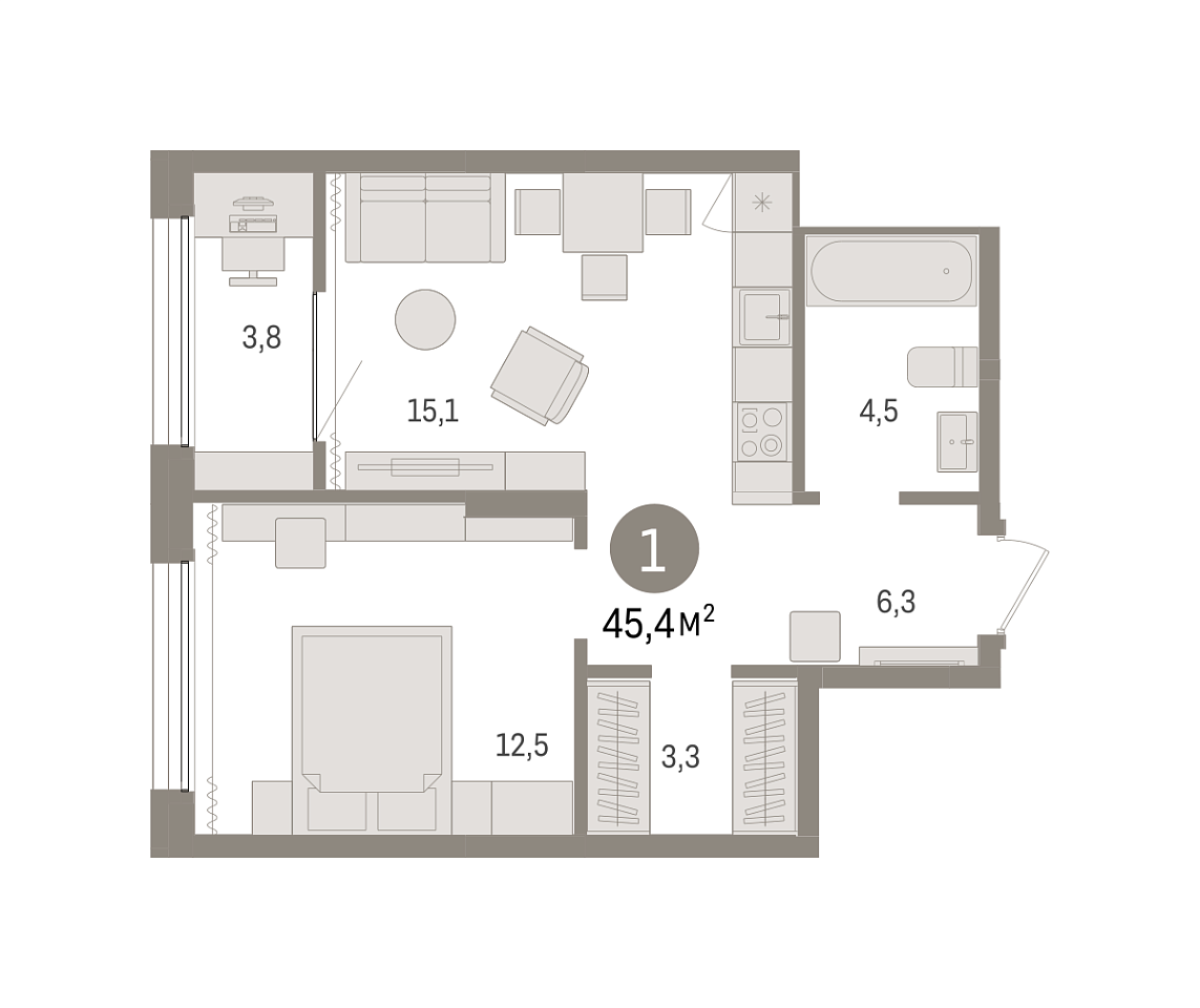 Купить новую однокомнатную квартиру 45.41 м² на 15/17 этаже в ЖК «Октябрьский на Туре», г. Тюмень за 7520000 ₽ | Агентство недвижимости «Вплюсе.Топ» — Недвижимость России