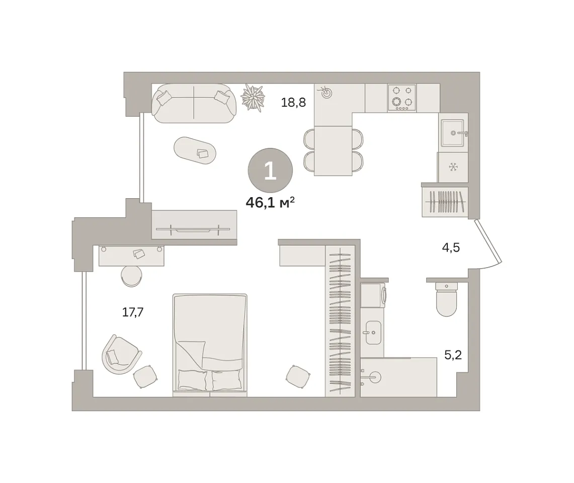 Купить новую однокомнатную квартиру 45.63 м² на 4/25 этаже в ЖК «Квартал «МОНС»», г. Тюмень за 25930000 ₽ | Агентство недвижимости «Вплюсе.Топ» — Недвижимость России